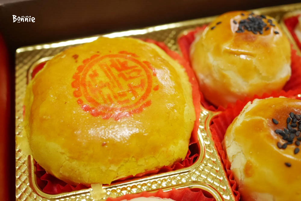 透過蛋黃上色後烤過,使外皮呈了金黃色。
