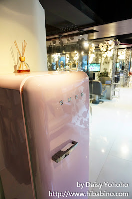 一旁超可愛的粉紅色冰箱裝著提供給客人的飲品,聽店員說有些比較熟的客人,