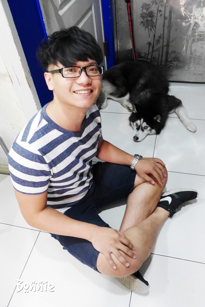 在等待之餘只好跟可愛的哈士奇一起玩了